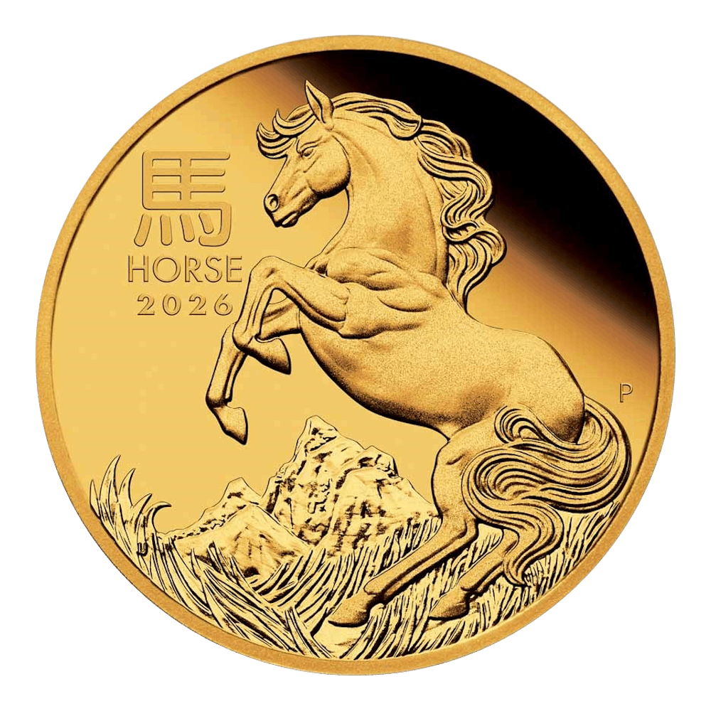 Wie bereits erwähnt, hat der Lunar jedes Jahr ein anderes Design mit einem Tierkreiszeichen des chinesischen Mondkalenders. Dieses Jahr ist die Münze mit ein Pferd versehen. Es sind ebenfalls die Aufschrift Horse 2026 und der Buchstabe p zu erkennen. Das p bezieht sich auf den Hersteller, nämlich Perth Mint.