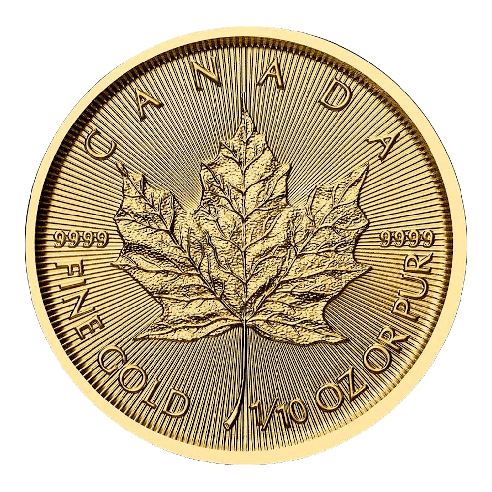 Die 1/10 oz Goldmünze ist definitiv eine ausgezeichnete Wahl für Anleger, die kleine Mengen Gold kaufen möchten. Goldmünzen haben sich als wertvoll, krisensicher und langlebig erwiesen. Der kanadische Maple Leaf gehört zu den beliebtesten Goldanlagemünzen.