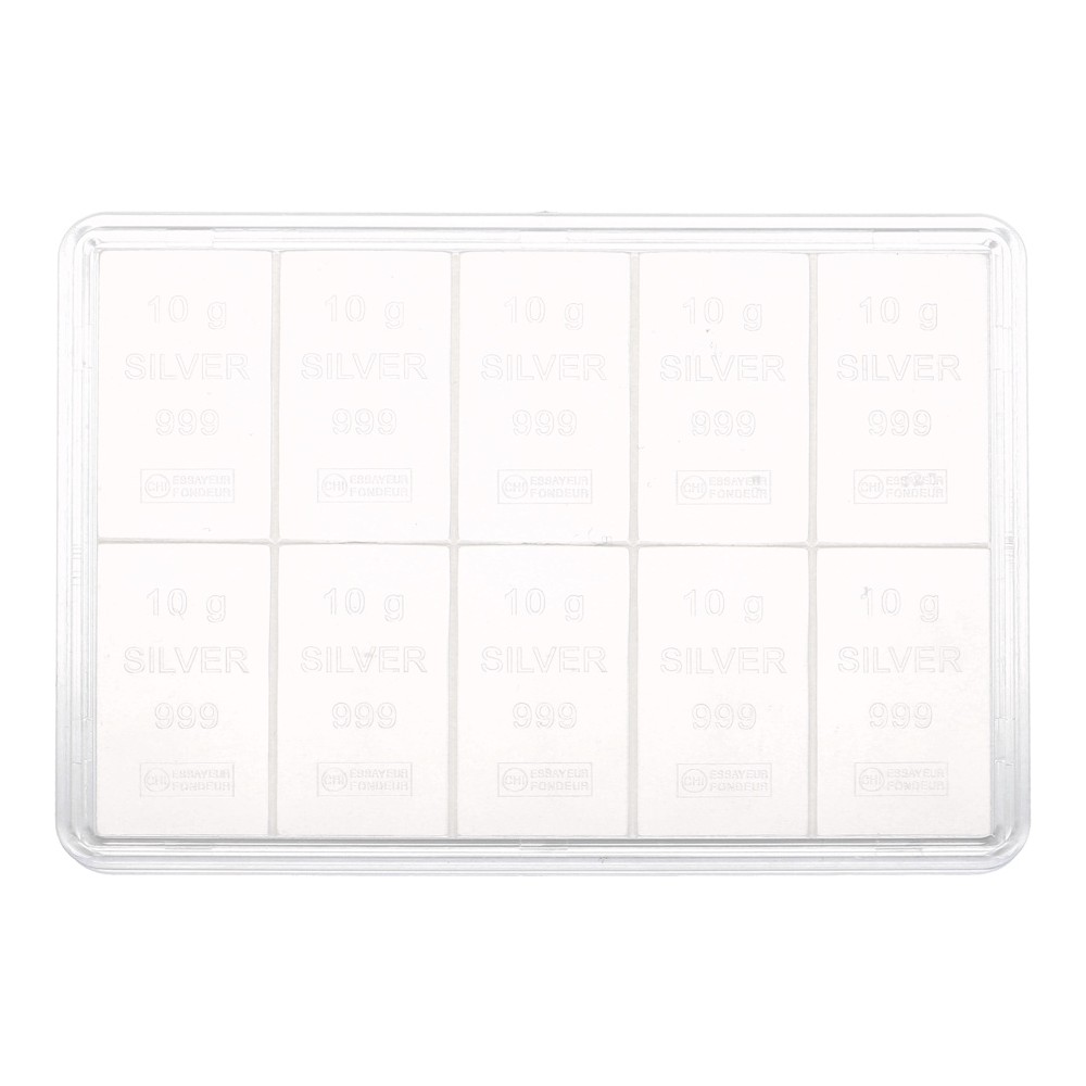 Möchtest du den Valcambi CombiBar mit 10 Silberbarren à 10 Gramm kaufen? Dann bist du bei Goldwechselhaus genau richtig. Der Valcambi CombiBar enthält 10 kleine Silberbarren à 10 Gramm.